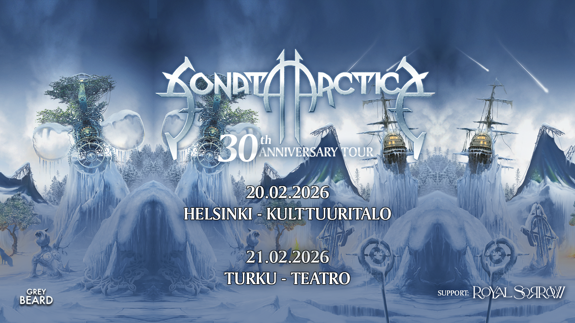 Alkuvuodesta 2026 ikoninen suomalainen metalliyhtye Sonata Arctica suuntaa juhlakiertueelle juhlistaakseen 30-vuotista uraansa – kolme vuosikymmentä uraauurtavaa musiikkia, unohtumattomia esiintymisiä ja pysyvää jälkeä maailman metalliskenessä. Kiertue käynnistyy 30. tammikuuta 2026 Seinäjoen Rytmikorjaamolta ja vie yhtyeen halki Suomen – muun muassa Kuopioon, Savonlinnaan, Ouluun, Tampereelle, Helsinkiin, Turkuun ja Kemiin.
